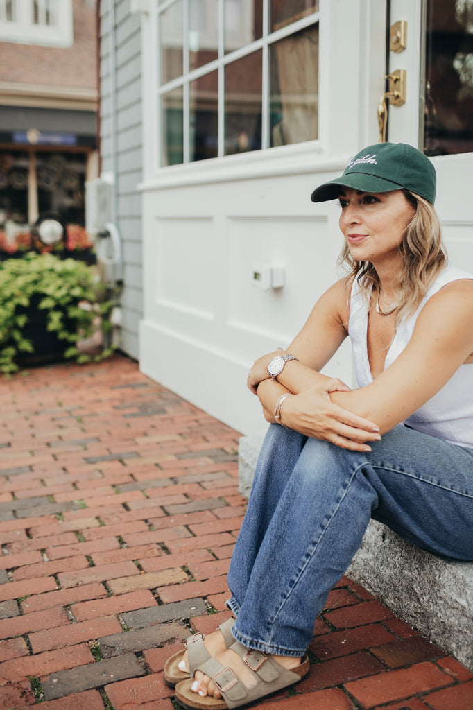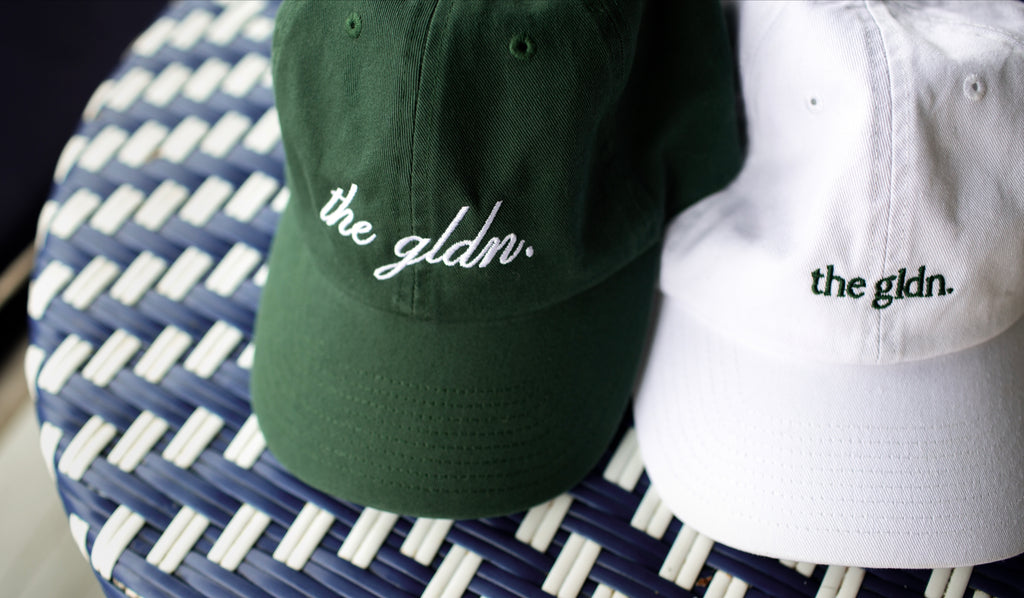 Vintage-inspired, unstructured canvas hat with white embroidery.